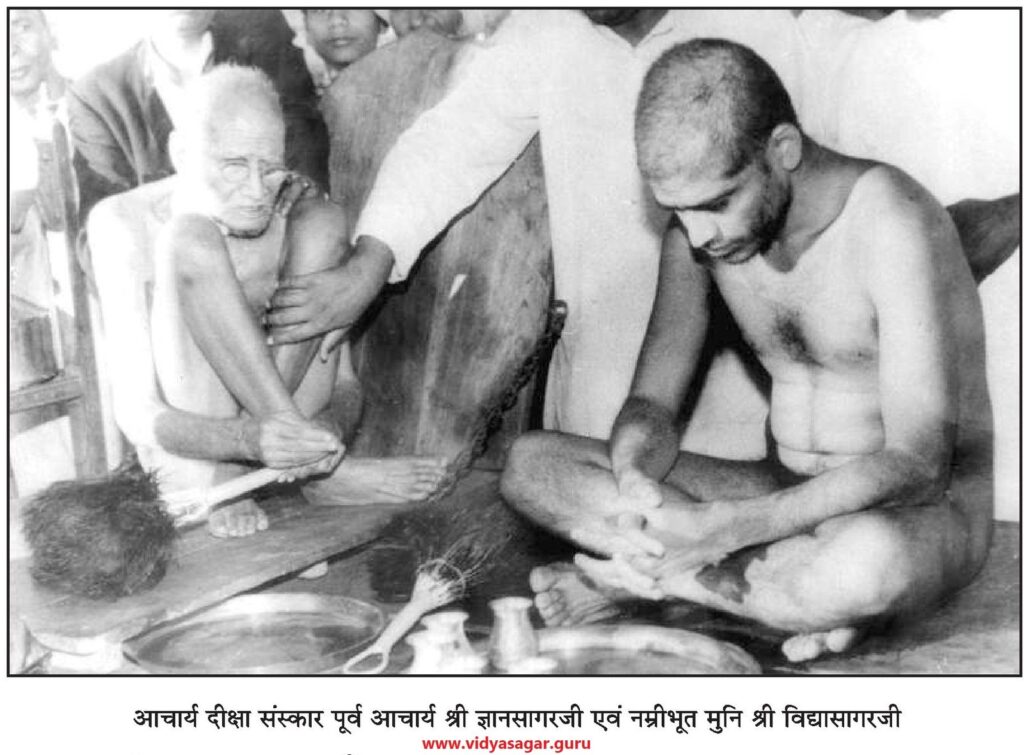 तब धन्य हुई वह घड़ी जब आचार्य श्री ज्ञानसागर जी ने अपने कर कमलों आचार्य पद पर मुनि श्री विद्यासागर महाराज को संस्कारित कर विराजमान किया एवं स्वयं आचार्य पद से नीचे उतर कर सामान्य मुनि के समान नीचे बैठ गए।