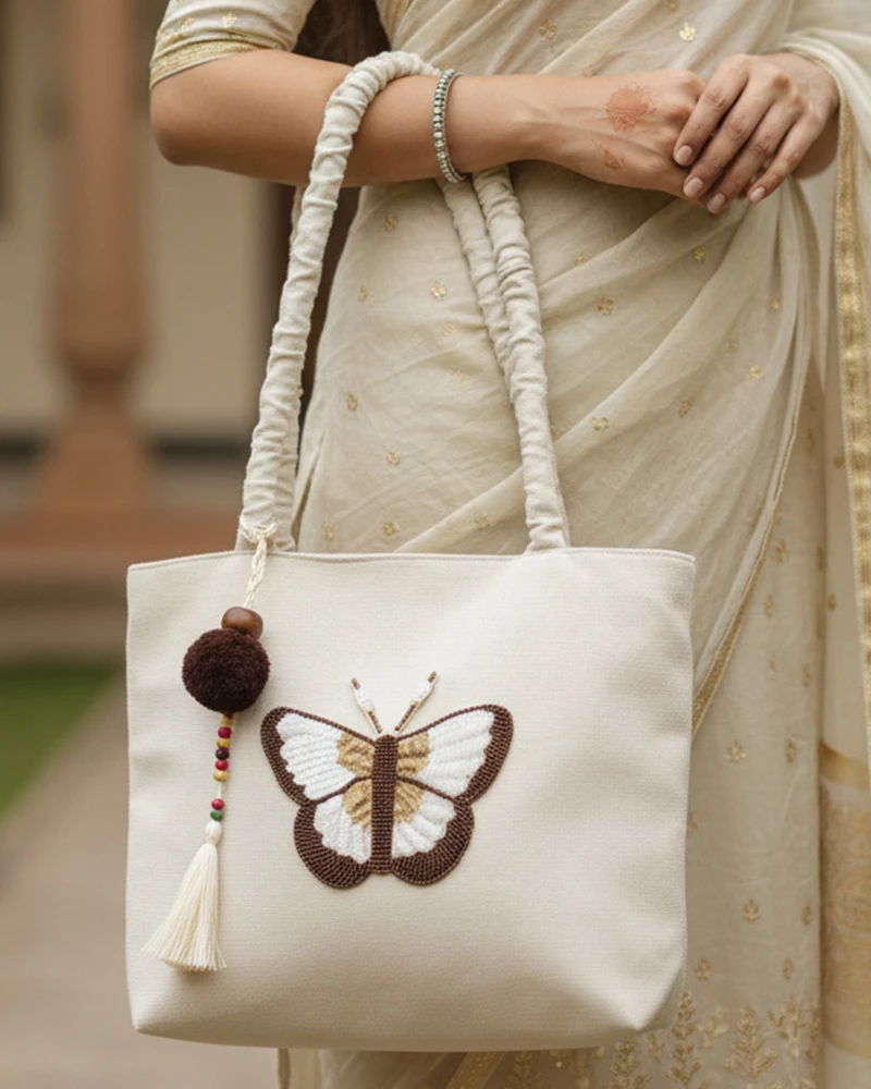 तितली ऑफ-वाइट टोट बैग