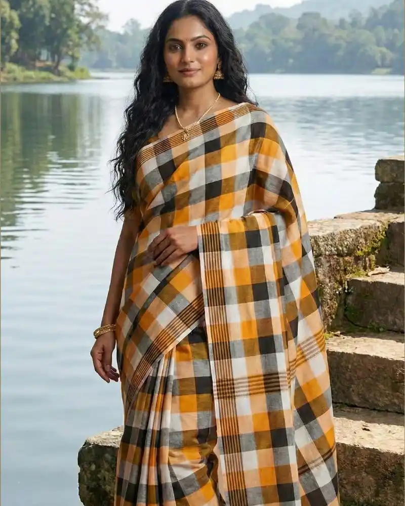 Golden Checks Saree