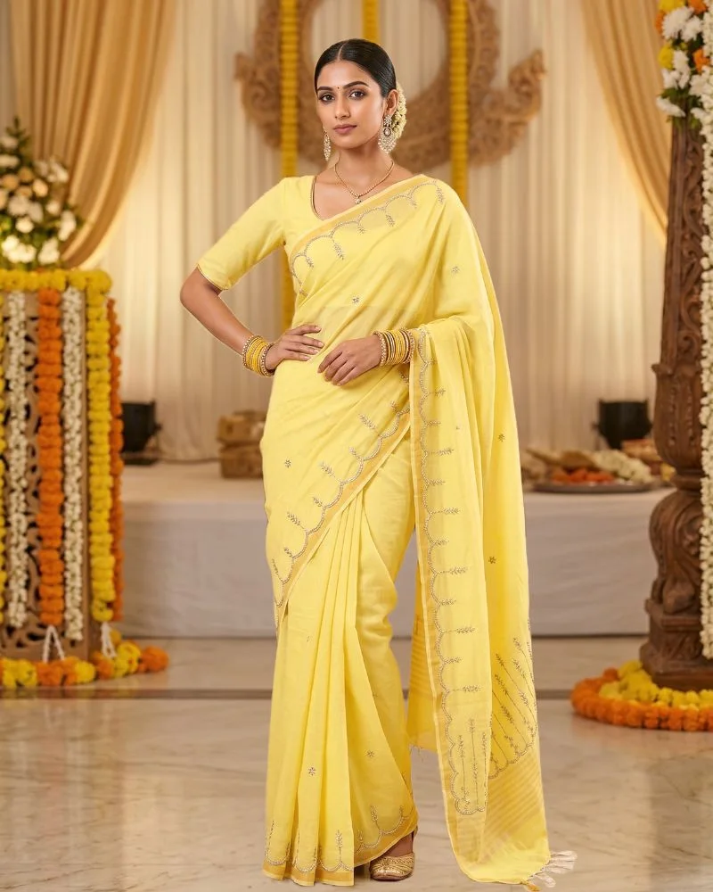 - Size : 6.3 m (5.5 m Saree + 80 cm Blouse )